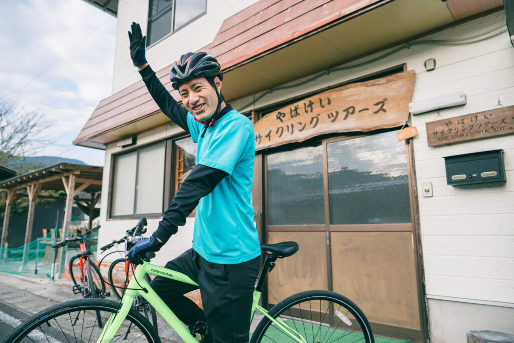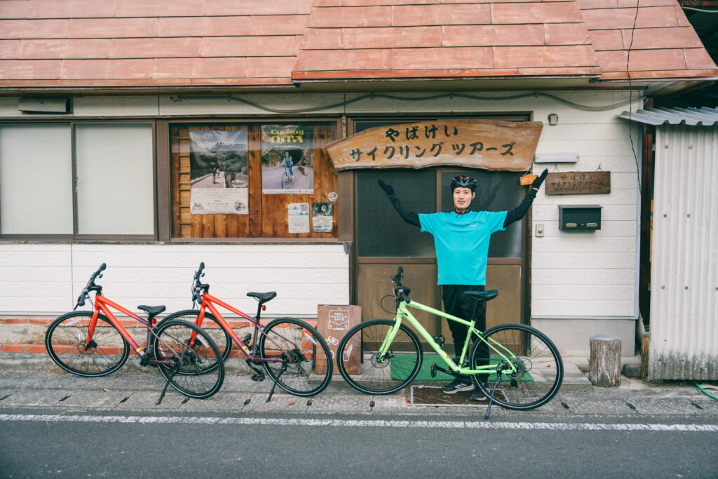 Cross bikes and road bikes are available for rental, and all riders receive a complimentary drink after their ride. I’m Matsunaga, a Yabakei native and local guide, and I’ll share the charm of this town with you through cycling.