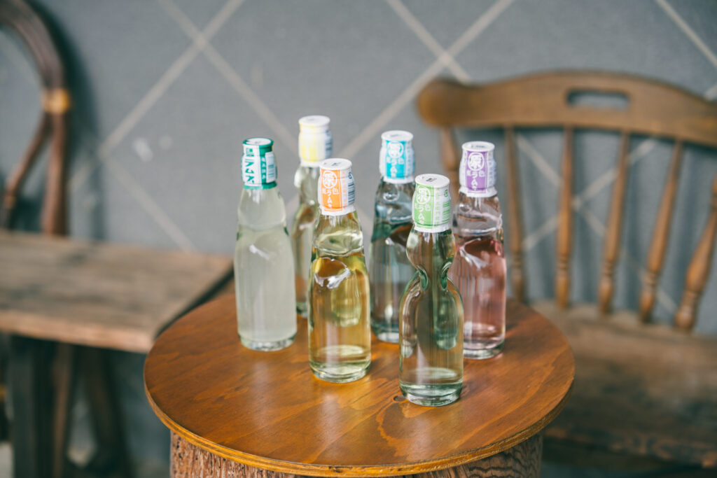 All the Nijiiro Ramune together! With nine flavors including lemon, orange, peach, and island mandarin, their vibrant colors are as charming as they are delicious.
