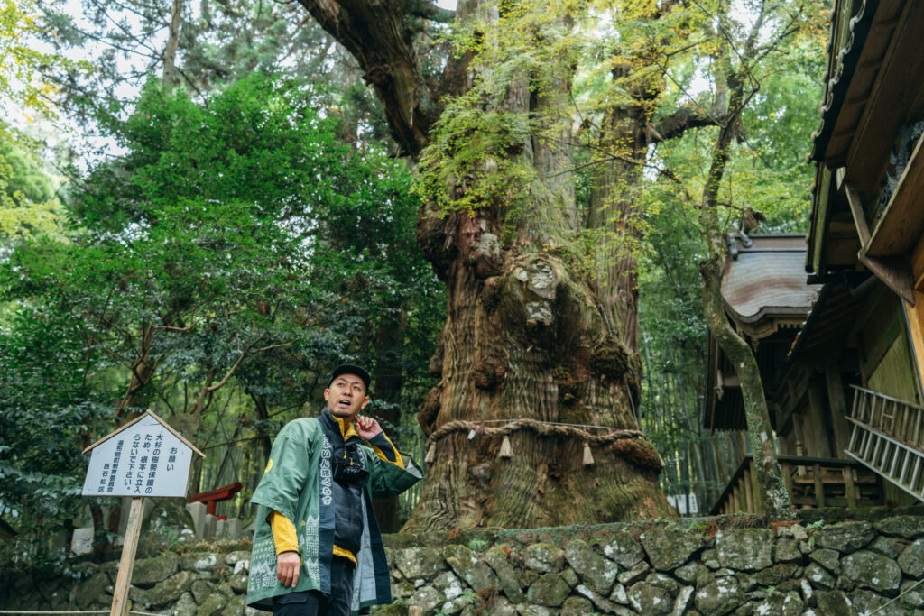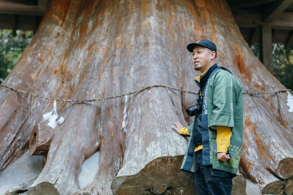 高さ38メートルのご神木。空洞の中は3畳分くらいの広さがあります。