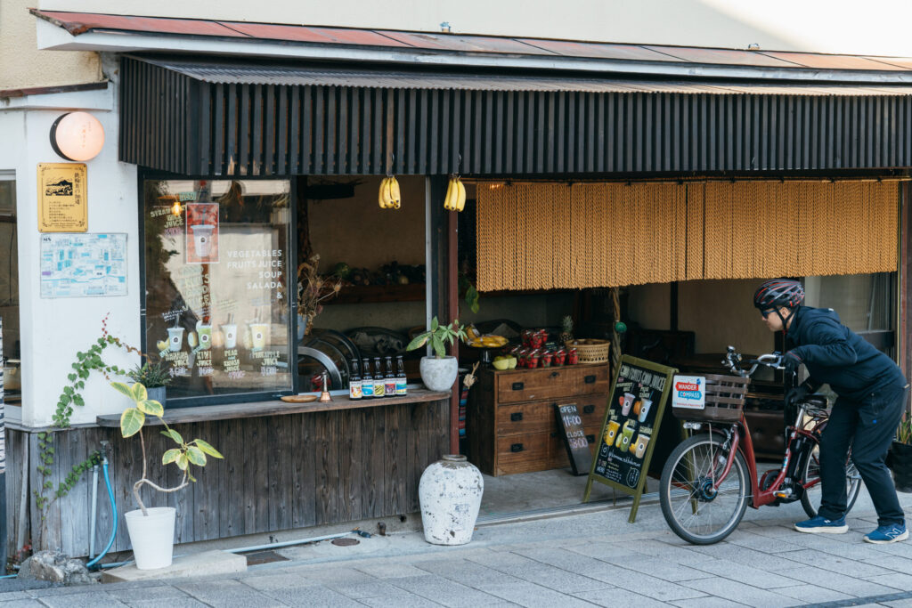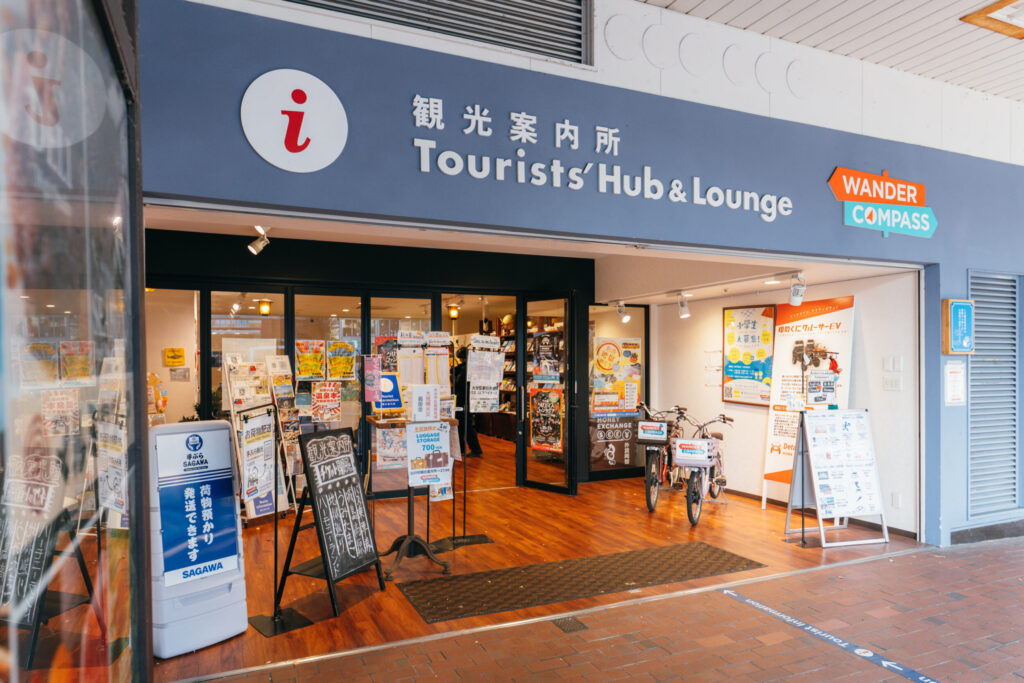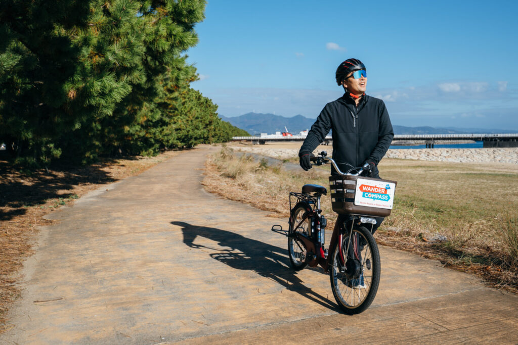 観光案内所『WANDER COMPASS BEPPU』が、サイクリングツアーの出発地点。レンタサイクルでは電動自転車を利用できます。