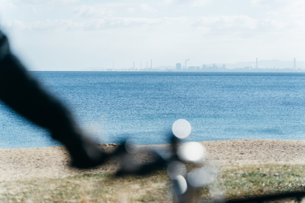 海の向こうに見える大分市の工場地帯。夜は遠景の工場夜景が楽しめます。