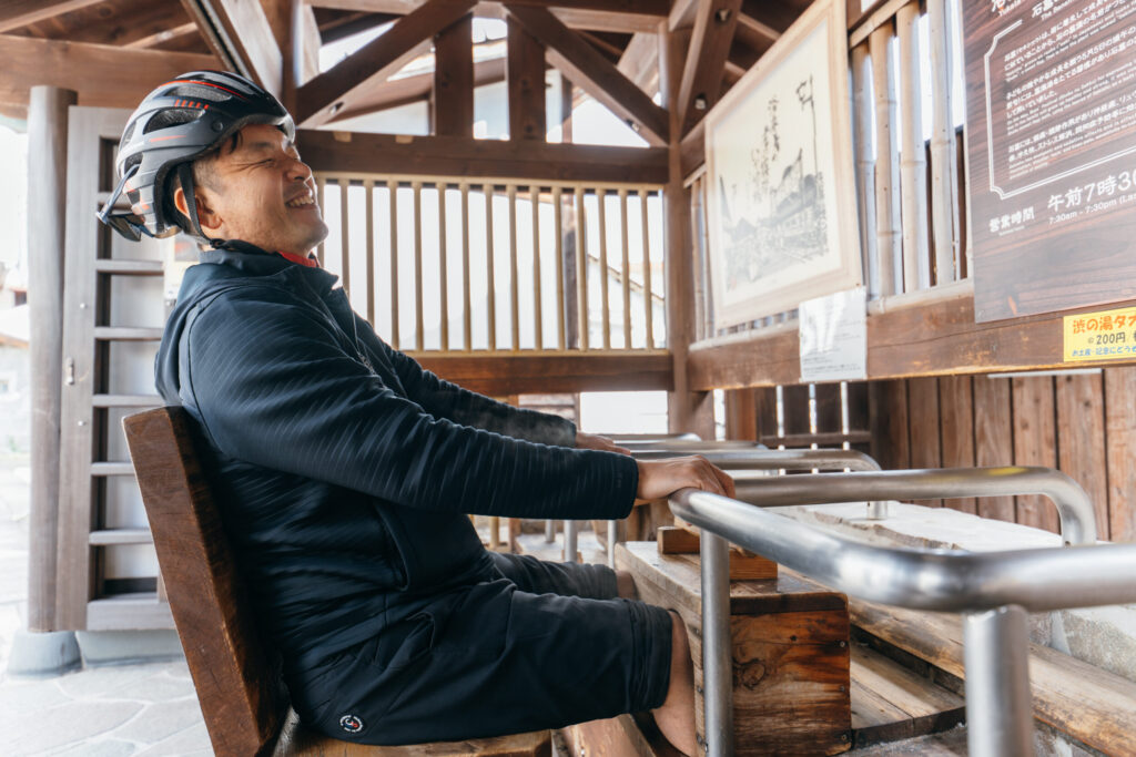 入口に併設されている「足蒸し」は、温泉の噴気を利用した蒸気浴を楽しめるもので、木箱の中に足を入れると、もくもくと立ちのぼる温泉の蒸気がじんわりと足元を温めてくれます。観光客にも、地域の人にも愛される小さな憩いの場になっていて、たまたま隣に座った知らない人とも、自然と会話が弾みます。