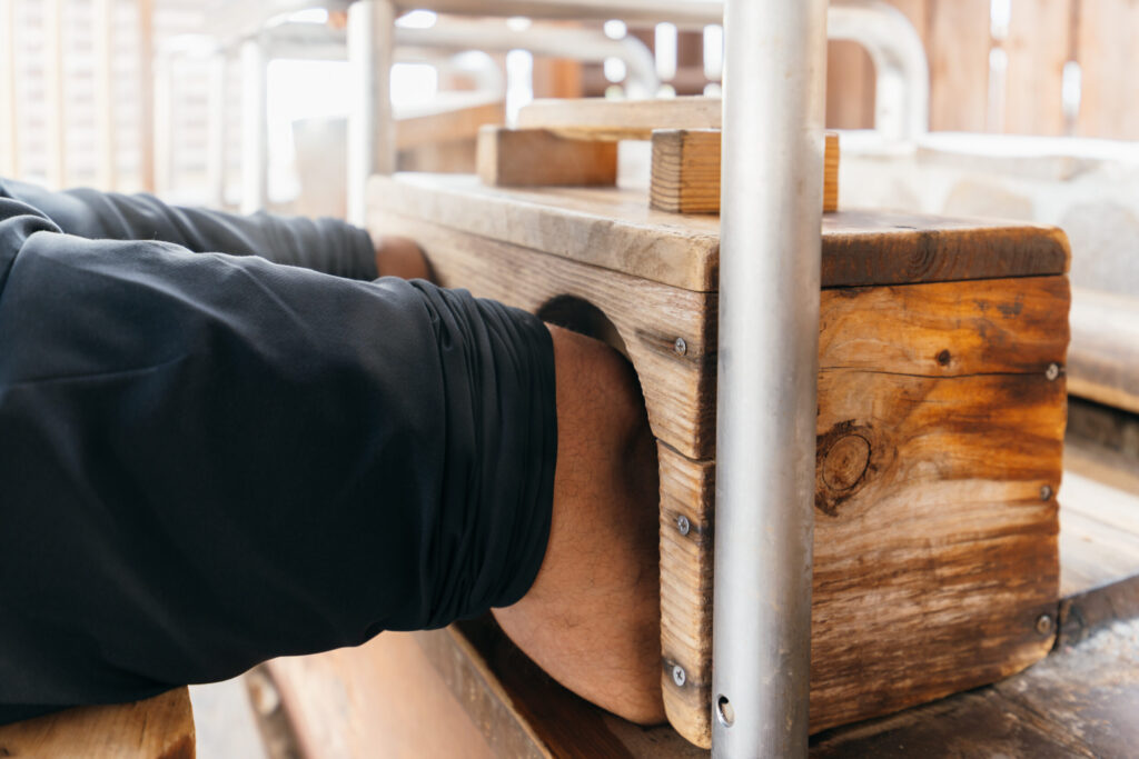 膝から下を入れて木箱で蓋をすると、蒸気のぬくもりがじわじわと伝わってきます。