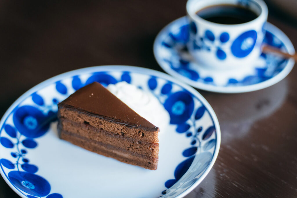 ケーキの甘さとコーヒーのコク深い味わいがよく合います。